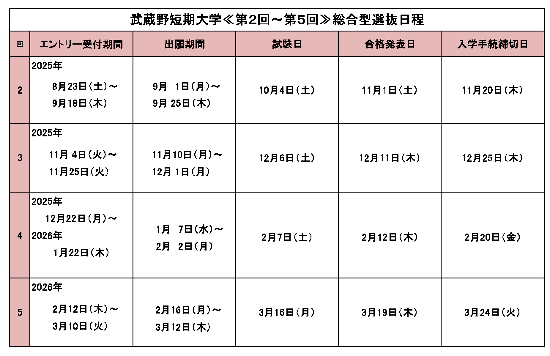 第1回の総合型選抜と第2回以降の総合型選抜は受験の手続が異なります。