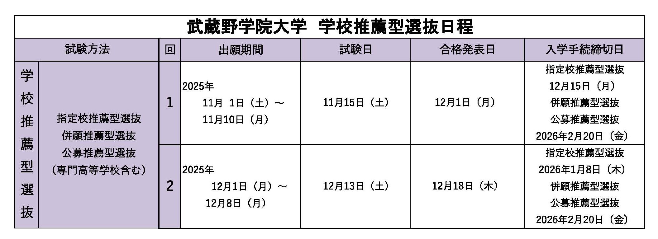 学校推薦型選抜の日程等