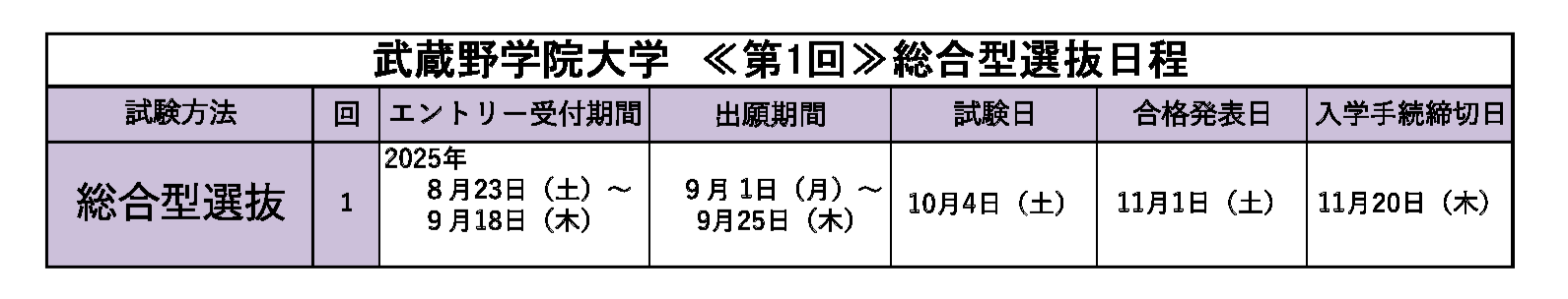 ●総合型選抜《第1回》日程
