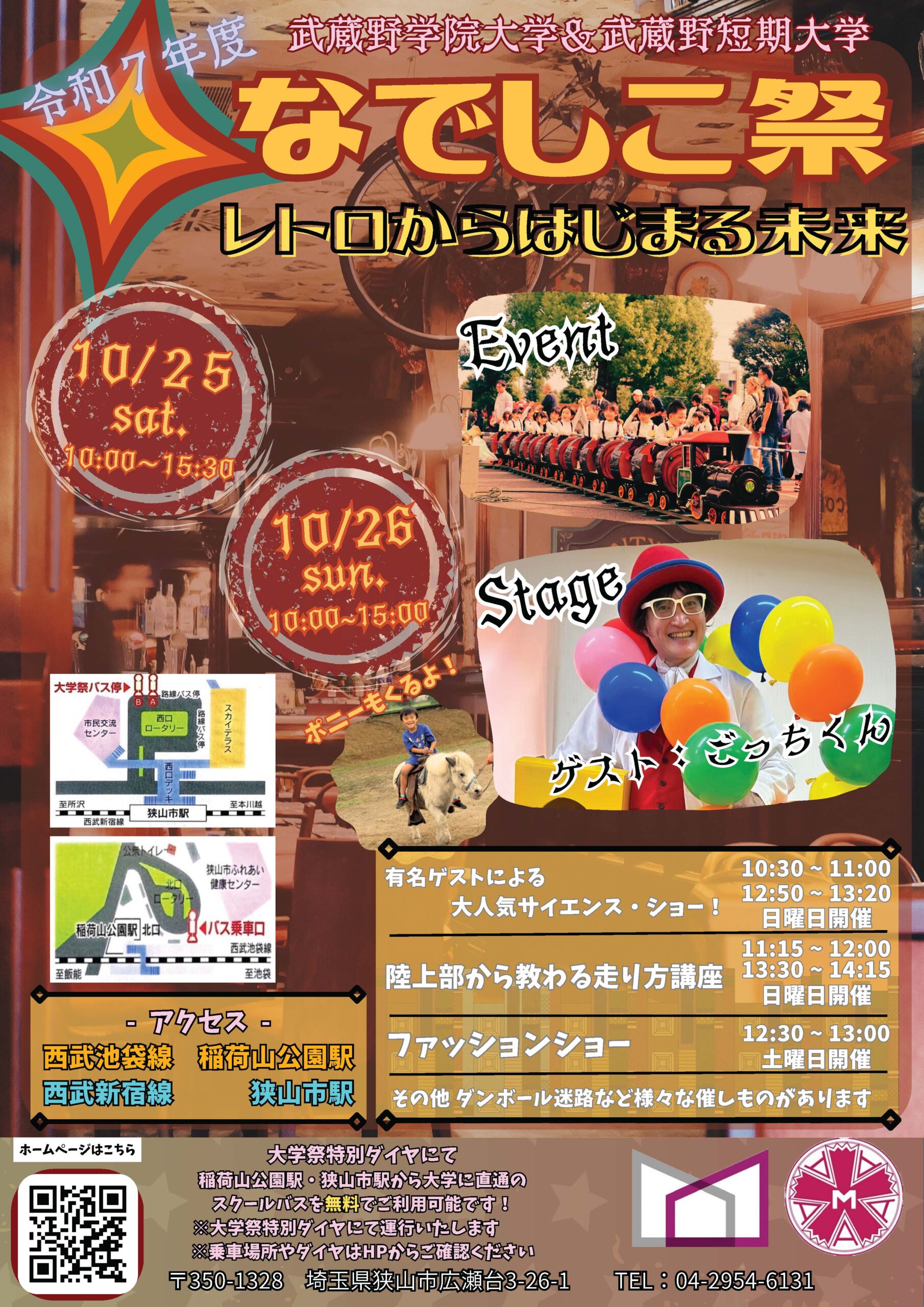 10月25日(土)、26日(日)、武蔵野学院大学・武蔵野短期大学なでしこ祭を開催いたします。