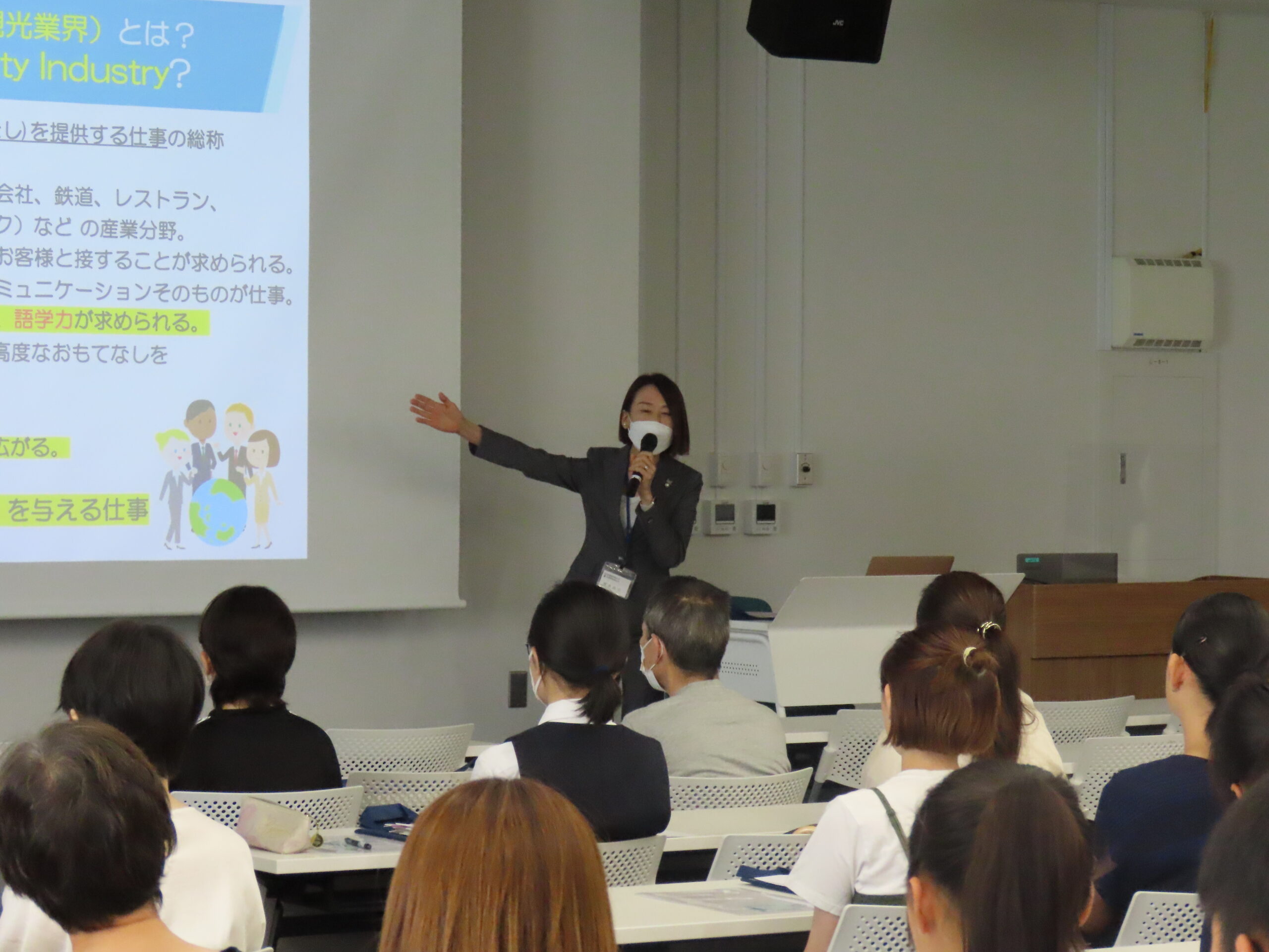 オープンキャンパスを開催しました2023年08月19日入試情報本日、国際コミュニケーション学部 第4回オープンキャンパスを開催しました。 模擬授業は、横手 尚子 准教授による「ホスピタリティ業界と実務英語」でした。 参加した皆さんは、元キャビンアテンダントによる航空業界で実際に使用していた英語を学びました。皆様のご都合にあわせてパーソナルキャンパスも実施しています。次回のオープンキャンパスは8/26(土)の開催を予定しております。