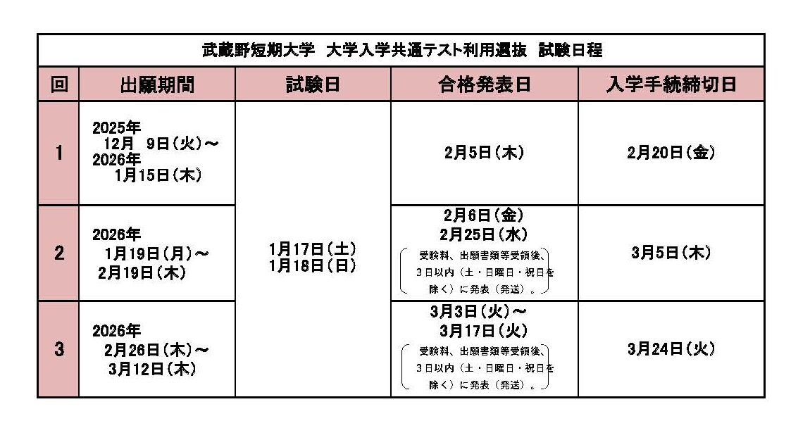 大学入学共通テスト利用選抜の日程