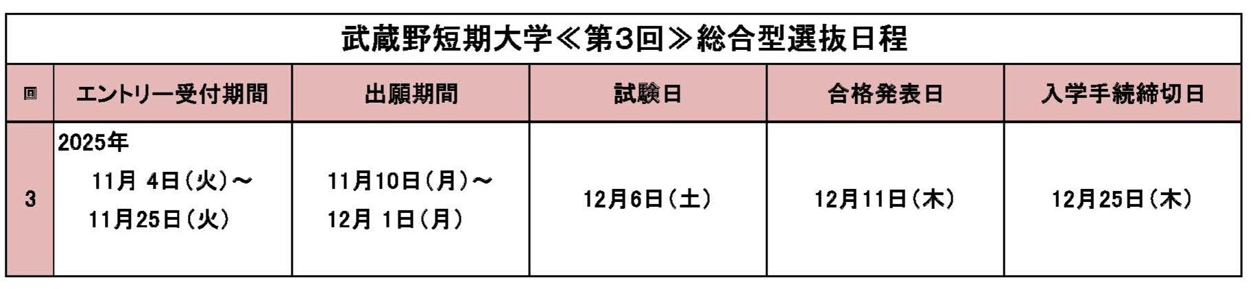 11月25日(火)まで、総合型選抜第3回エントリー受付中です。