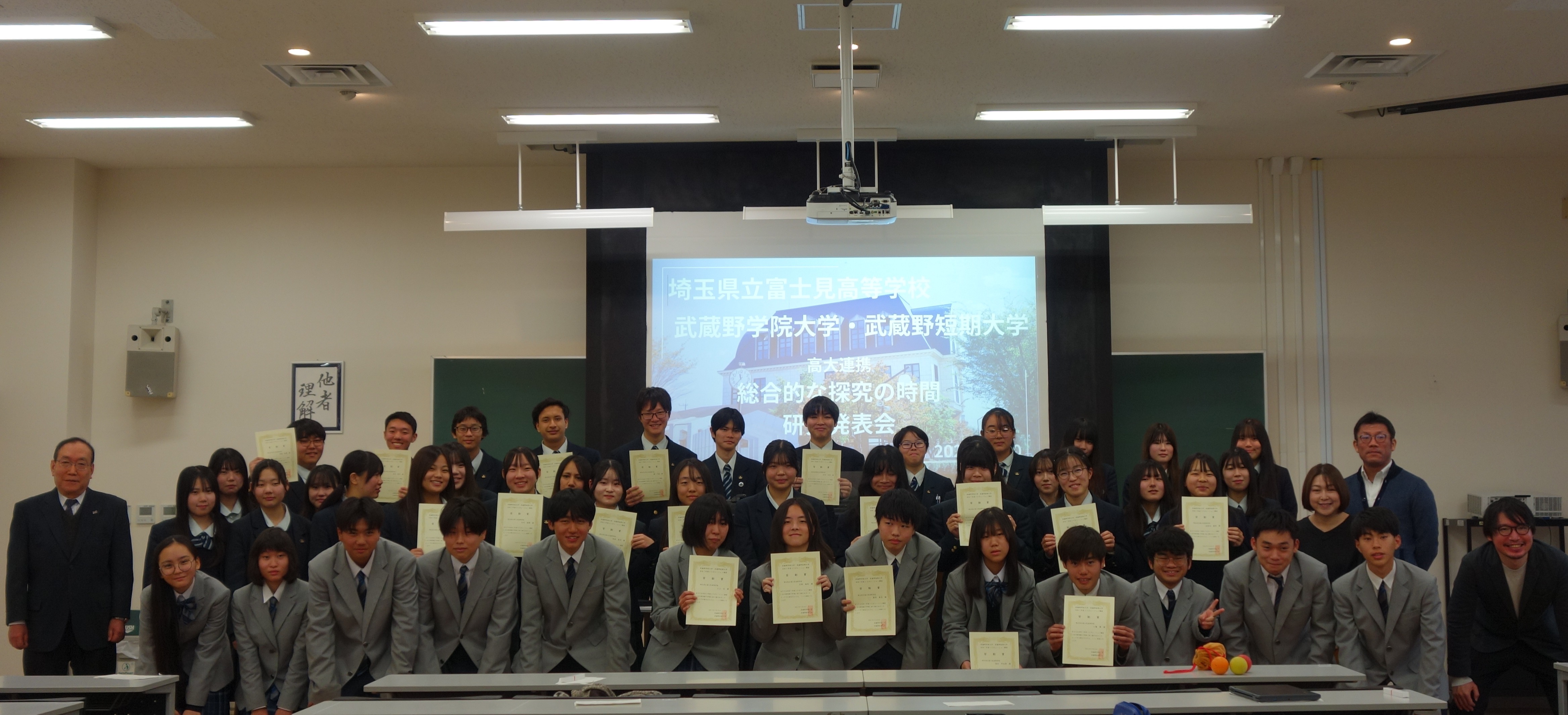 2025年12月20日(土)に、本学にて埼玉県立富士見高校の1年生、2年生45名が参加して総合的な探究の時間の研究発表会が実施されました。