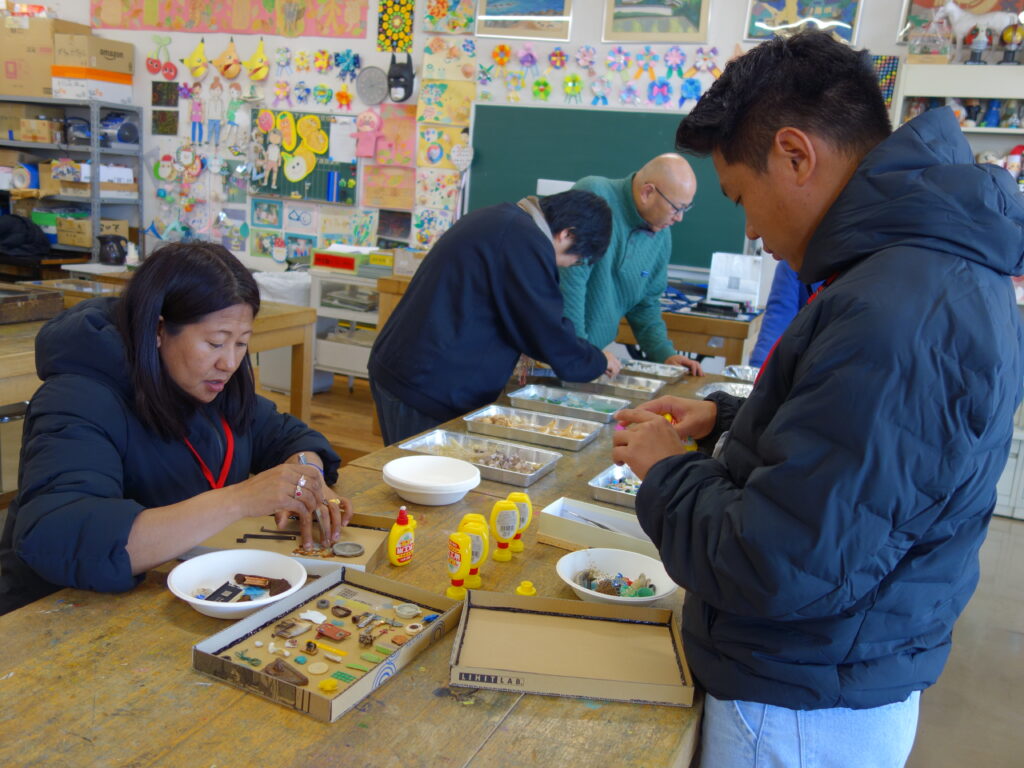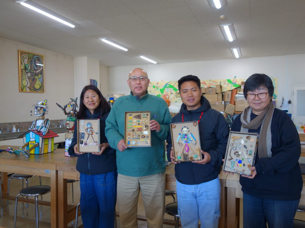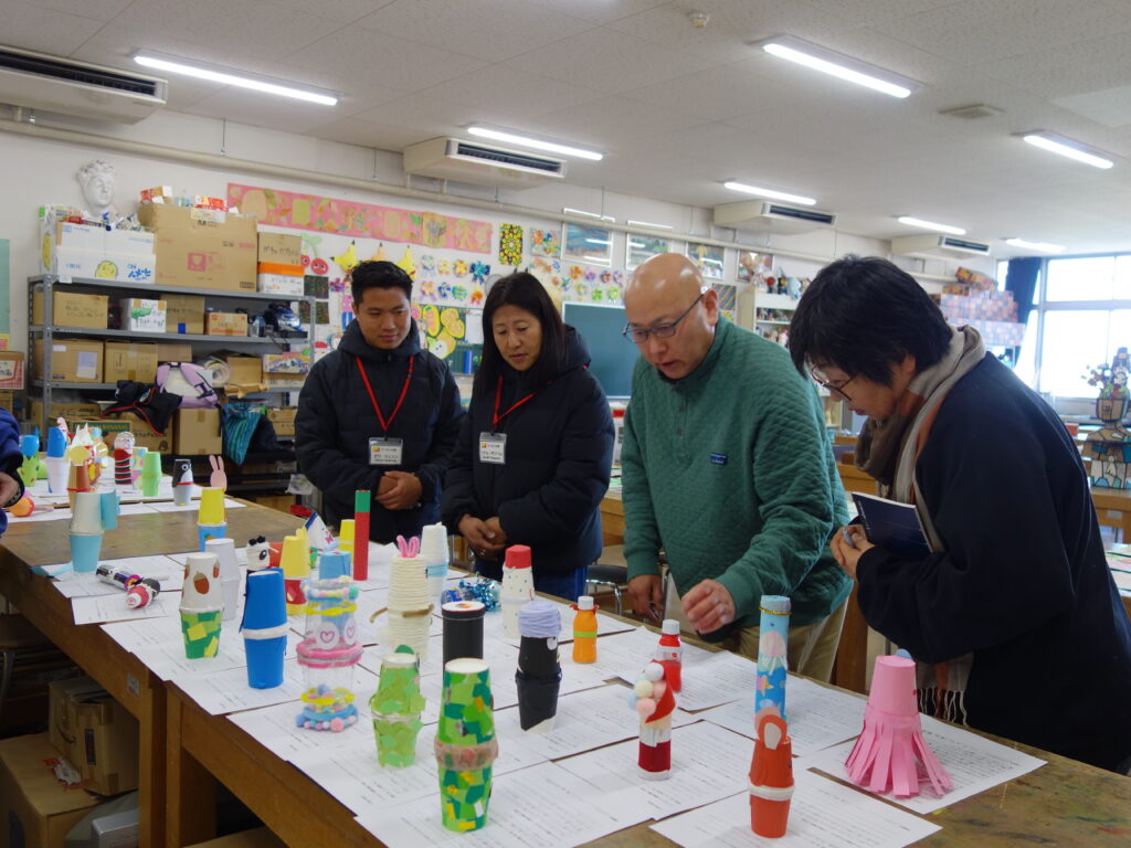 美術研修生は、小山一馬教授より廃材等を使った教材の提案や、