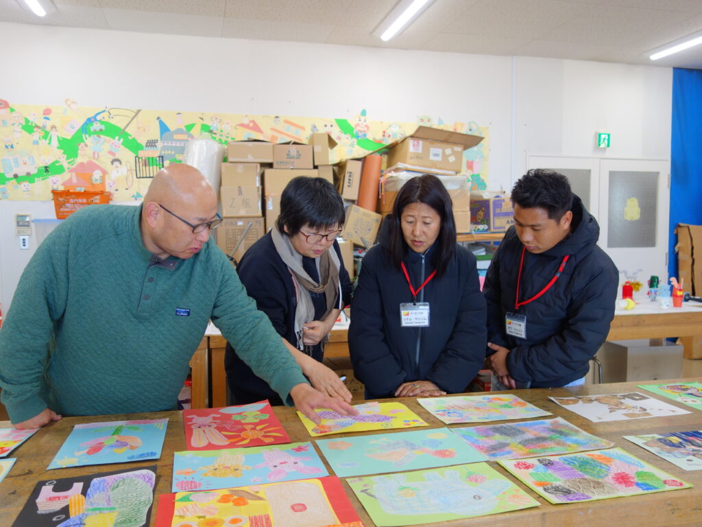 2026年1月27日(火)に本学、小山一馬教授のもとに、ブータン王国の美術研修生2名の方が訪問されました。画材や道具が不足し、教材開発に苦慮しているブータン国内の美術教員の指導力向上を目的に、小山一馬教授と関連の深い、浜田市世界子ども美術館が国際協力機構(JICA)から事業委託を受け、美術館に於いて研修を行っています。