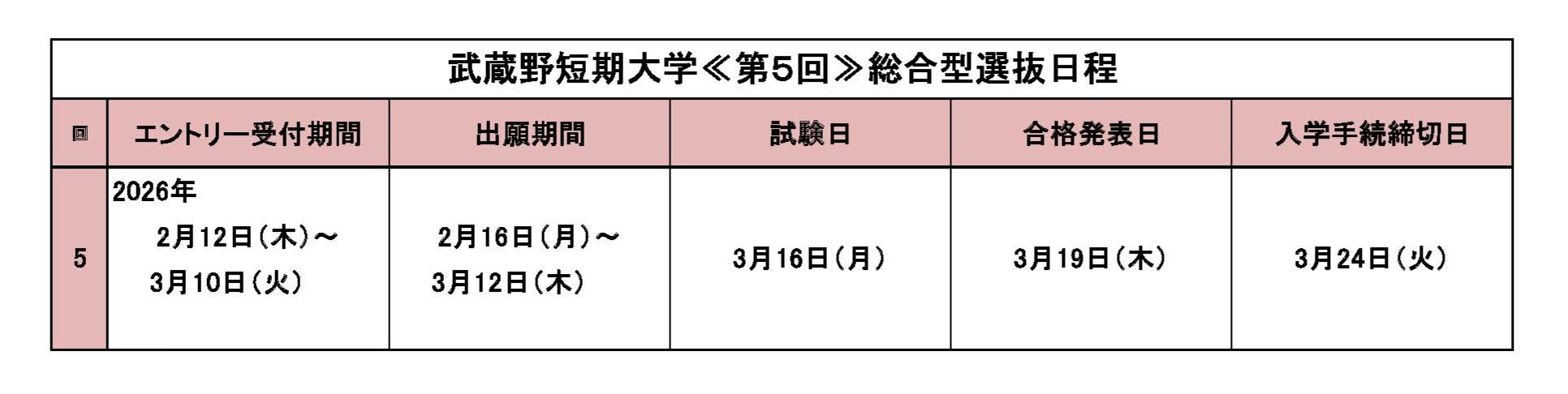 3月10日(火)まで、総合型選抜第5回のエントリー受付中です。