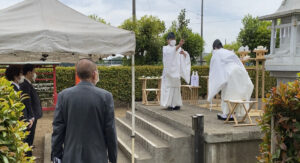 武蔵野神社・武蔵野稲荷神社例大祭を行いました 2022年05月12日 お知らせ 学内には、武蔵野神社・武蔵野稲荷神社が鎮座しており、昨日は例大祭を行いました。 川越氷川神社様に、斎主をお願いし、感染症予防のため人数を限っての参列となりましたが、学生、教職員の健康と新型コロナウイルスの終息を祈念致しました。