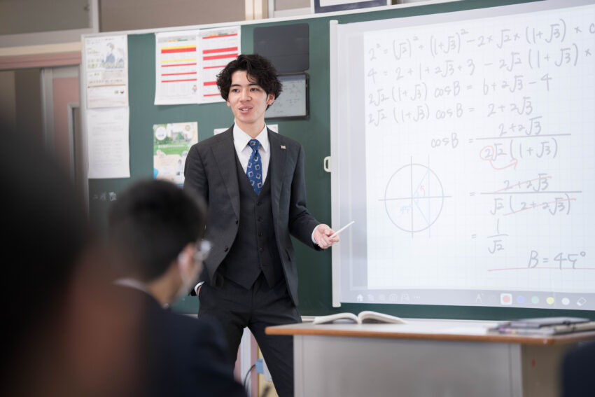 数学で「解法のテクニック」と呼ばれているものを突きつめれば、仕事をする際の「段取り」に似ているのではないでしょうか。忙しいなか、効率よく仕事をこなしていくために、物事を整理して順序良く解決していけば、難しい問題も難なく乗り越えていきます。このように、武蔵野では数学という教科は「問題解決のための段取りを学ぶ教科である」と考えています。実際の授業でその段取りを見つけて理解することは簡単なことではありません。その対策として実験的に授業内で「相談タイム」という時間を設けています。先生だけではなく、生徒も教えあうなかで活気ある授業がどのクラスでも展開されています。
