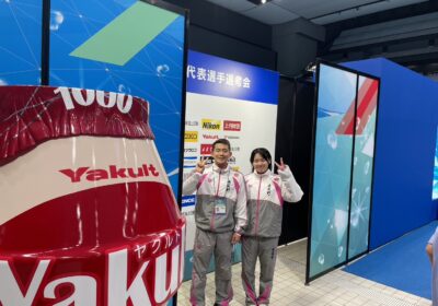 在校生だけでなく、卒業生も7名出場し、見事に青木玲緒樹さんが100m平泳ぎでパリオリンピック出場件を獲得。