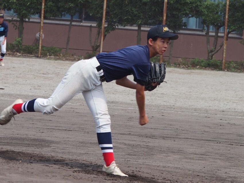 先発の君島希君(高校2年2組)が短いイニングながらも好投。