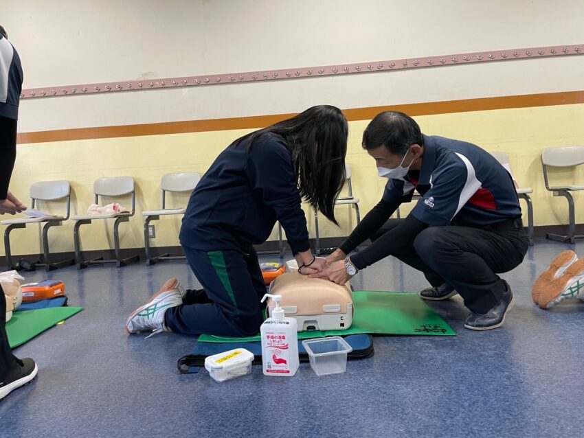 今回は生徒対象の救命講習として、希望者を対象に行いました。