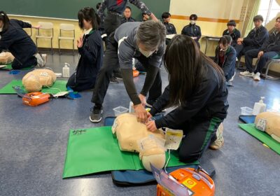 昨今では、至るところで目にするAEDですが、触ったことのある生徒は少なく、とても貴重な経験になりました。