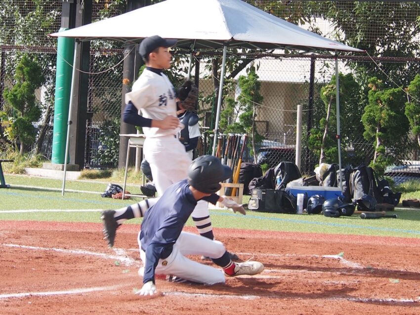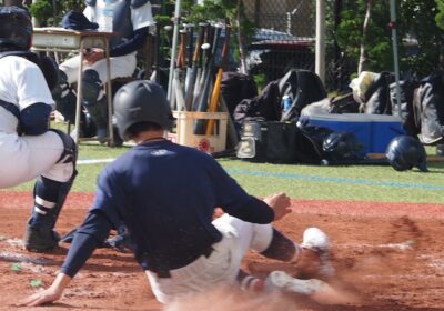 続く2試合目は、続き先制点を許すも、鎌田祐輔君(高校2年生)のセカンドゴロにより点を返すことに成功。