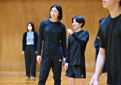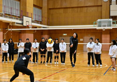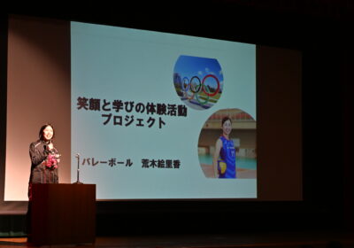 「オリンピアンの講演・実技見学または体験」という枠組みで、荒木さんによる講演と本校バレーボール部への実技指導を行っていただきました。