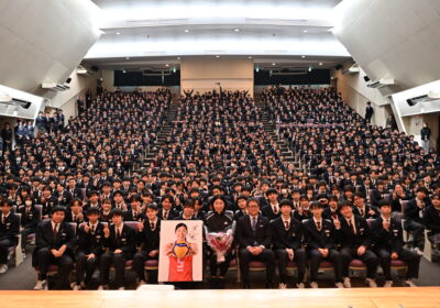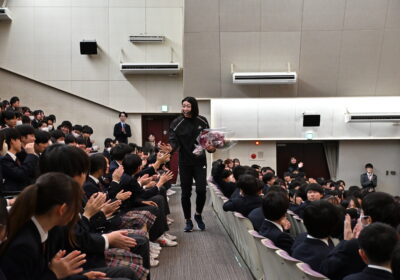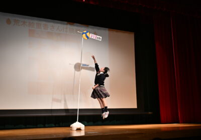 また、貴重なお話をいくつも聞けただけでなく、現役時代の荒木さんの最高到達点に挑戦する企画にお付き合いいただいたり、生徒からの質問にも気さくに答えていただいたりと、大盛況のうちに終了しました。