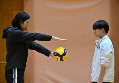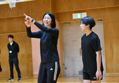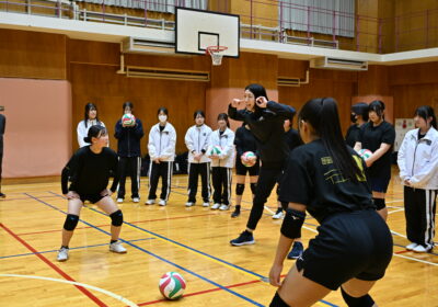 続く実技指導では、本校バレーボール部の選手たちに丁寧にご指導いただきました。