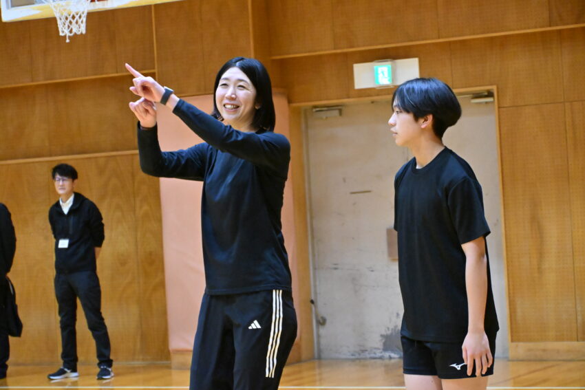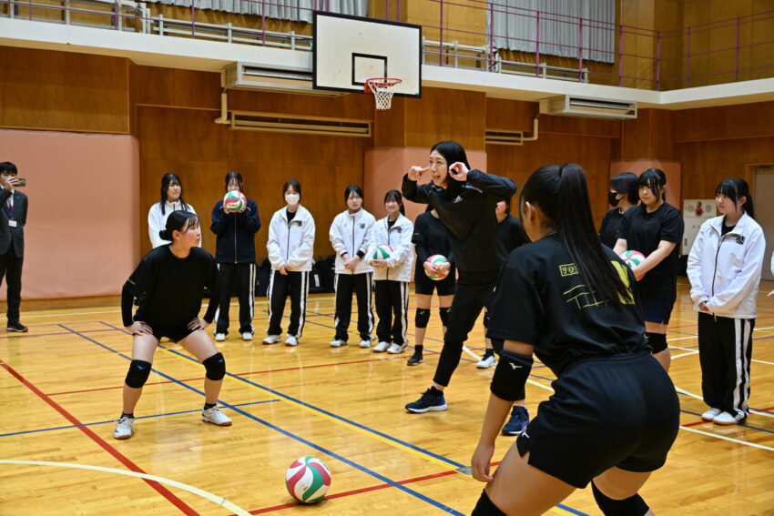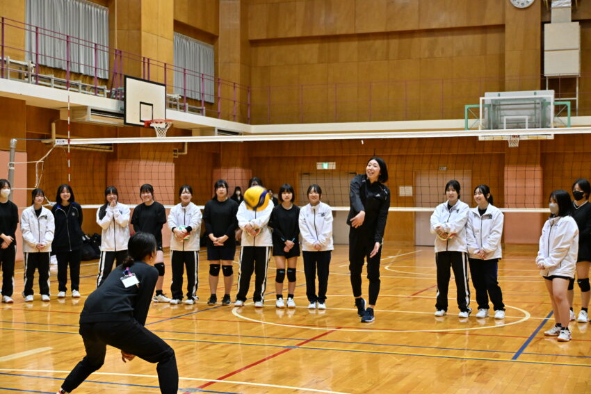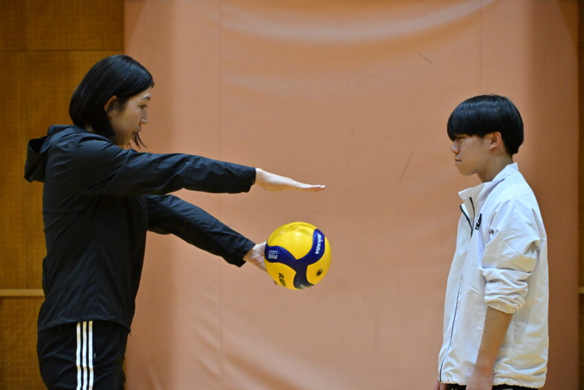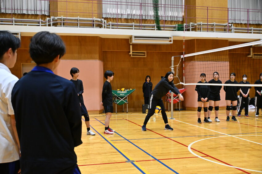 続く実技指導では、本校バレーボール部の選手たちに丁寧にご指導いただきました。