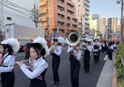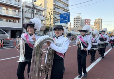 12月16日(火)に滝野川で行われた「歳末防犯・防火パトロール」に、ブラスバンド部とチアダンス部が参加しました。