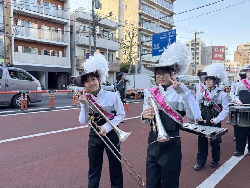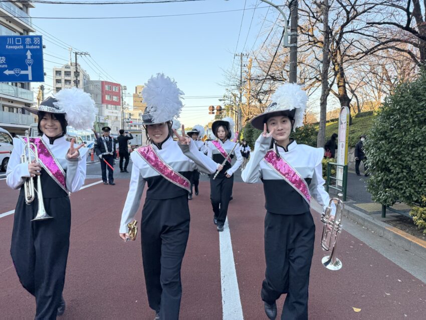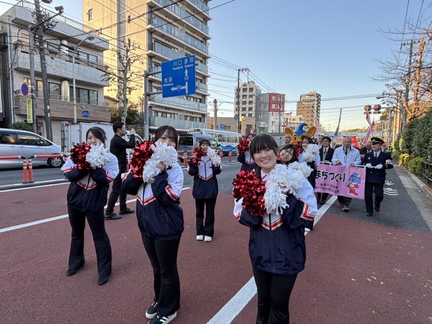 12月16日(火)に滝野川で行われた「歳末防犯・防火パトロール」に、ブラスバンド部とチアダンス部が参加しました。