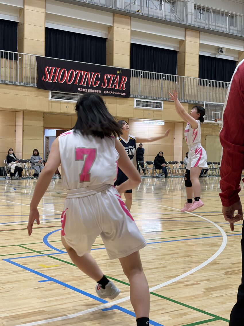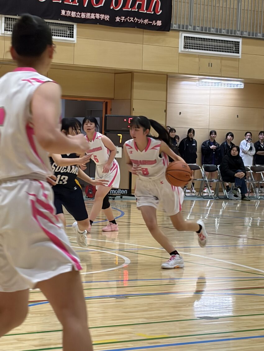 初戦の都立北園高校戦では、序盤から相手のディフェンスに苦戦を強いられる中、キャプテン安田茉礼さん(高校2年生)と副キャプテン名取李恵さん(高校2年生)のディフェンスや、杉浦那奈さん(高校2年生)の献身的なプレーで応戦。