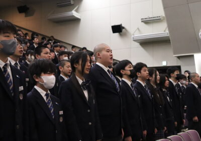 校歌・校章歌・武蔵野讃歌の斉唱から始まり、校長先生からは、教育の場に参加することを大事にして欲しいという話とSNSの使用に関して話がありました。