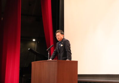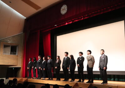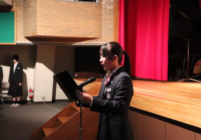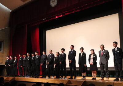 新入生と在校生が向かい合う形で、それぞれの代表が言葉を読み上げ、講堂内が歓迎の拍手で包まれました。