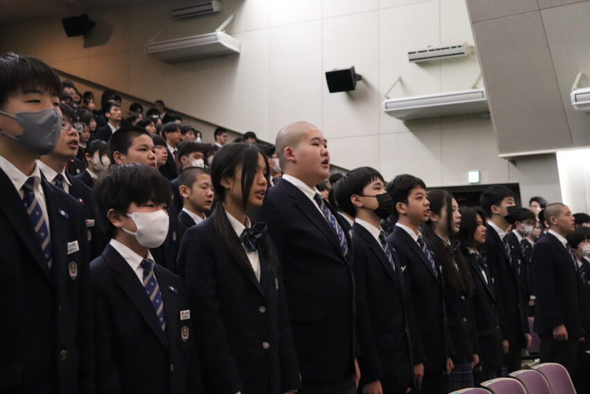 校歌・校章歌・武蔵野讃歌の斉唱から始まり、校長先生からは、教育の場に参加することを大事にして欲しいという話とSNSの使用に関して話がありました。