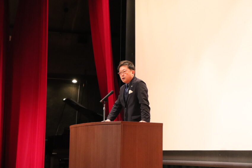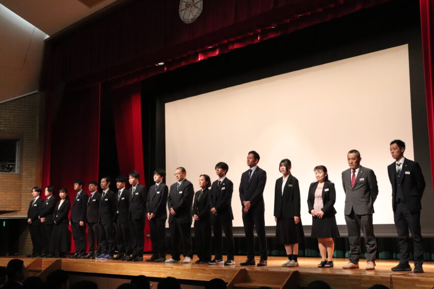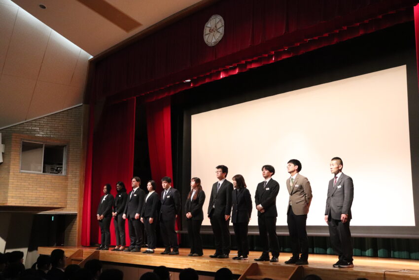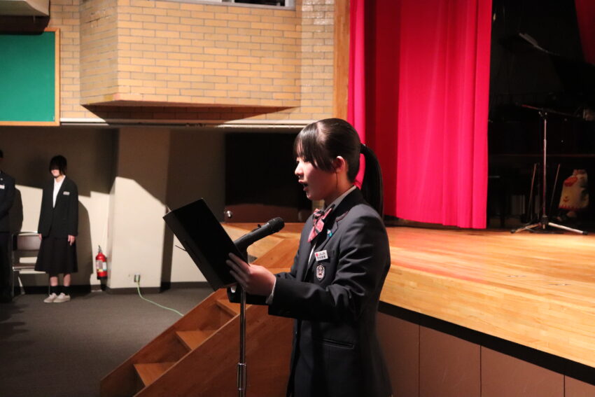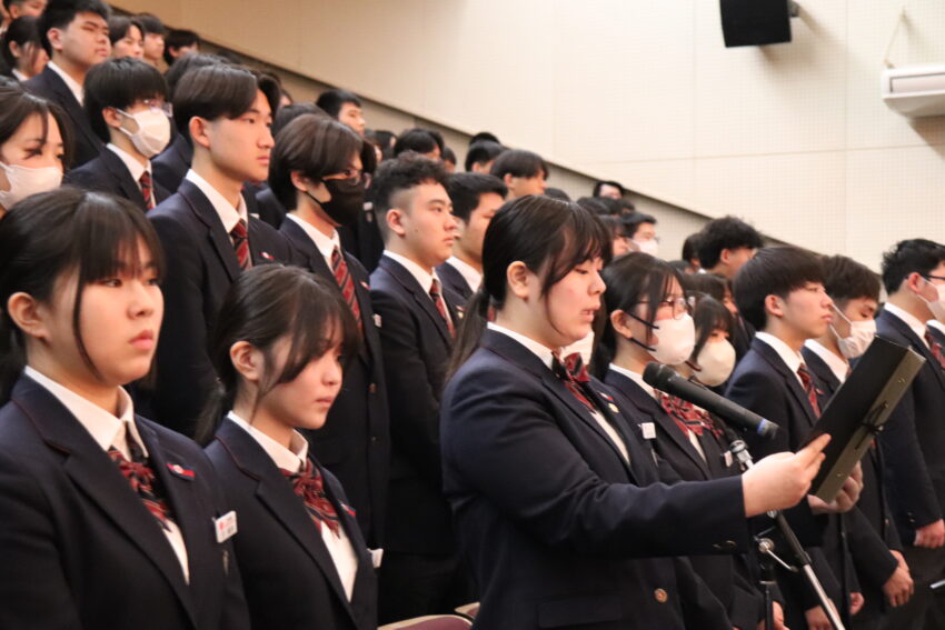 新入生と在校生が向かい合う形で、それぞれの代表が言葉を読み上げ、講堂内が歓迎の拍手で包まれました。