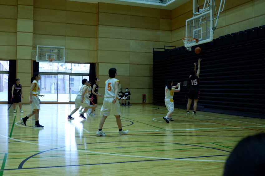 ほぼ全員が得点する中、間野春花さん(高校3年3組)が両チーム最多の20得点を挙げる大活躍!