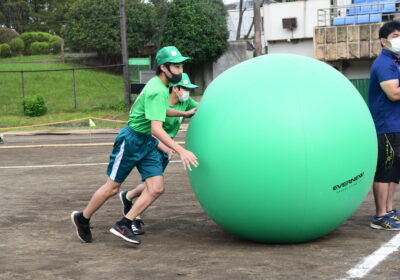 全種目1年生vs2年生vs3年生の学年対抗で、綱引き・大玉転がしリレー・タイフーン・学年対抗リレーの4種目で競い合いました。