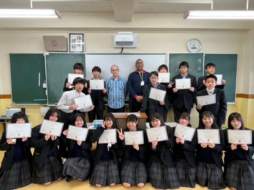 そして授業の最後には、毎朝の単語テストで全て満点を取った生徒が表彰を受け、加えて参加者全員に今回の講習の修了書(Certificate)が渡されました。