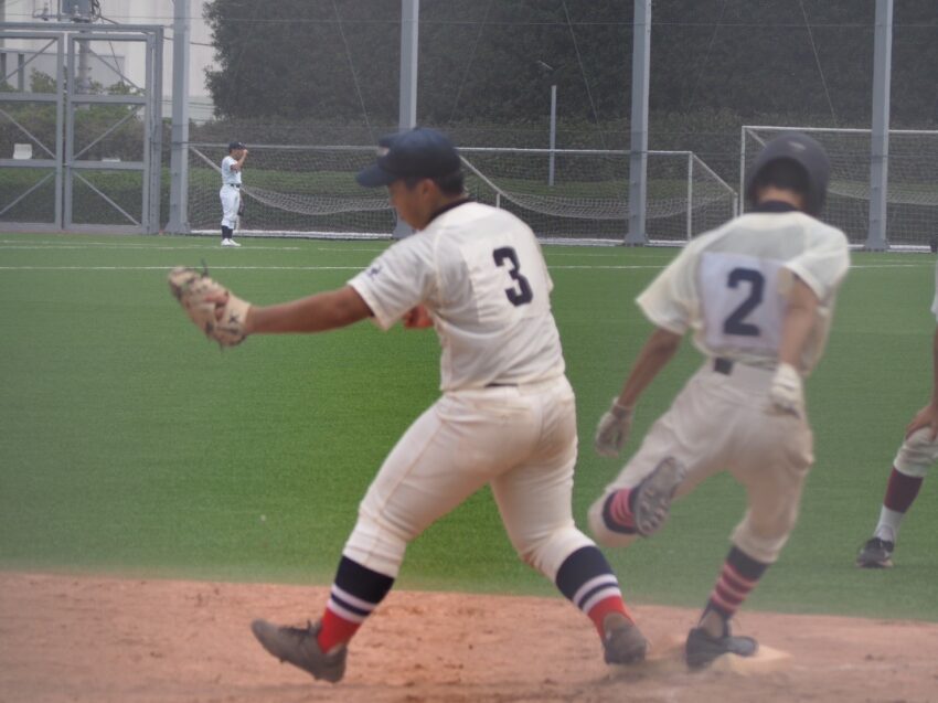 試合は初回からチャンスを作り、4番楢崎心優君(高校1年2組)のセンターへのタイムリーヒットで2点を先制!