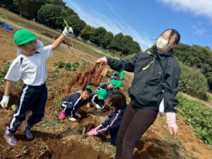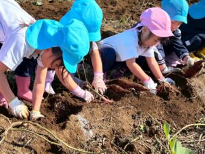 掘ったお芋は、お家に持って帰ったり、幼稚園で料理保育をしたりして美味しくいただきます。